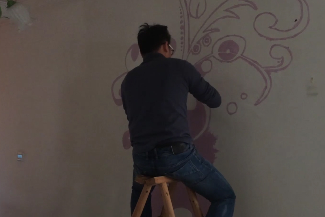 老亮喜欢让自己的房间充满各种颜色,于是他花了好几天在自己房间的墙上画了一幅海底世界。